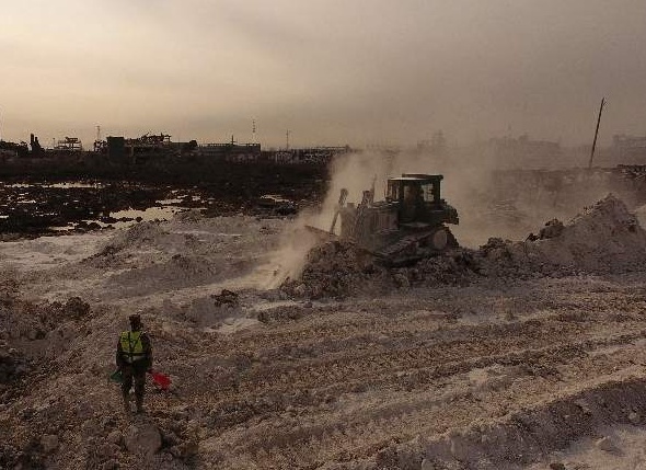 河北宣工高驅動推土機在江蘇響水“3·21”特大爆炸事故核心區(qū)爆炸坑搶險救援活動中再建新功
