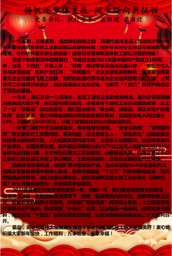河北宣工黨委書(shū)記、執(zhí)行董事、總經(jīng)理梁國(guó)欣致新年賀詞